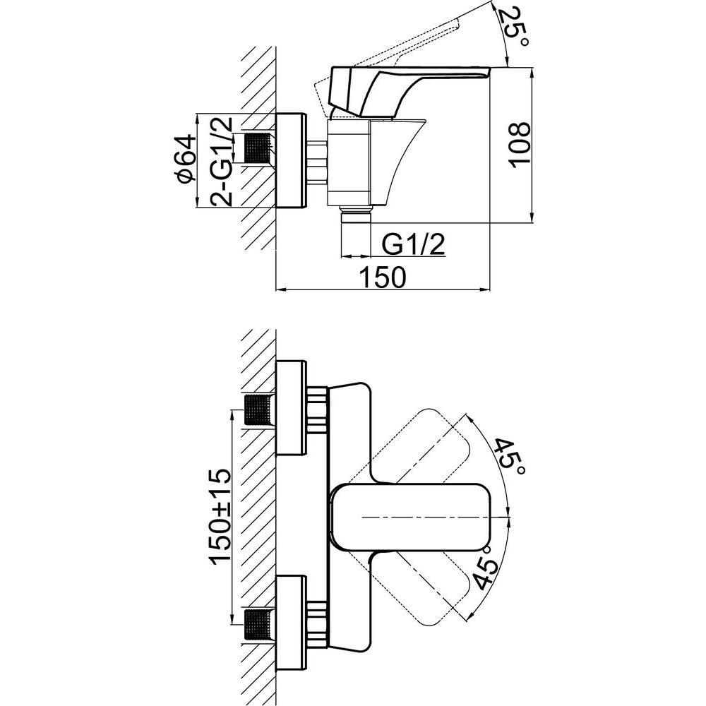 Смеситель имеет стенки толщиной от 2,5 до 3,5 мм, что обеспечивает высокую прочность. Он оснащён керамическим картриджем диаметром 38,5 мм, который производит минимум шума. Комплектуется практичным душевым гарнитуром и лейкой с тремя режимами струи, что делает ежедневное использование максимально удобным. Подводка стандартная 1/2 дюйма. Глянцевая поверхность устойчива к образованию налёта.