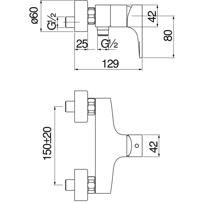 - Диаметр резьбы подводки (G): 1/2"