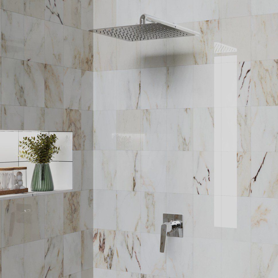 Смеситель из латуни обладает двойным покрытием никелем и хромом, что гарантирует его блестящую поверхность и защиту от коррозии. Внутренняя часть включена в комплект, что облегчает установку. Смеситель оснащён керамическим картриджем марки Nuovo Galatron, известным своей долговечностью и точной регулировкой. Стандартное соединение с подводкой 1/2 обеспечивает совместимость с большинством душевых гарнитуров. Гарантия на изделие составляет 5 лет, что подчёркивает его долговечность.