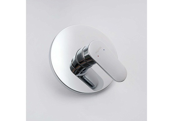 Смеситель монтируется на стену через одно монтажное отверстие с использованием скрытой подводки стандартного размера 1/2". Диаметр картриджа составляет 35 мм. Корпус выполнен из прочной латуни с хромированным покрытием, декоративная накладка изготовлена из нержавеющей стали. Однорычажное управление обеспечивает комфортное использование, а конструкция снижает вероятность протечек.