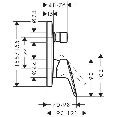 Смеситель для ванны, однорычажный, внешняя часть.