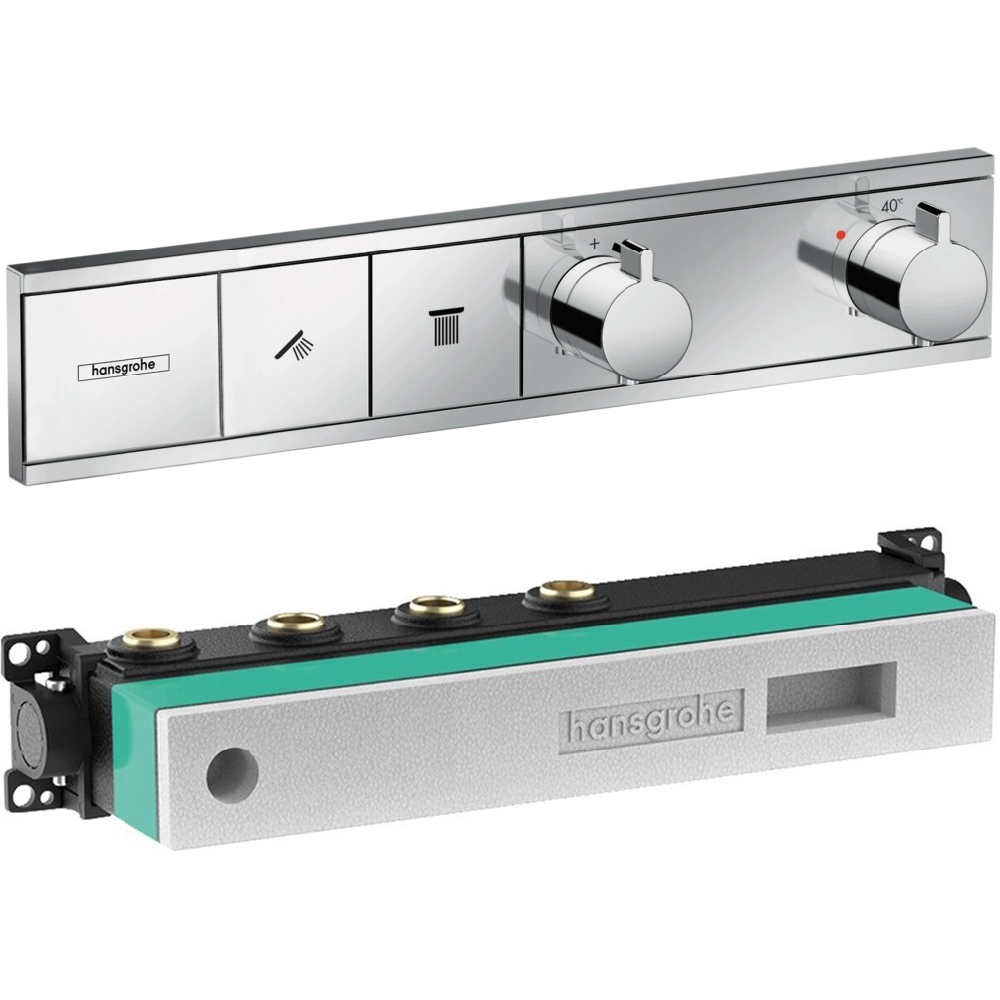При использовании смесителей с термостатами RainSelect вы можете управлять процессом принятия душа с помощью больших плоских кнопок Select. Этот тонкий центр управления аккуратно встраивается в стену. Переход на новый уровень — в соответствии с высочайшими стандартами дизайна. Активное регулирование расхода воды — количество воды можно устанавливать с помощью круглого регулятора.