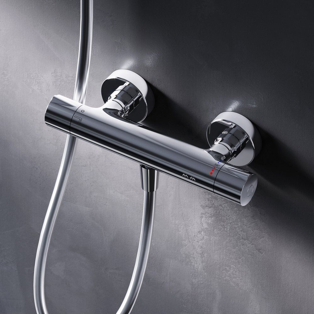 Данный термостатический смеситель выполнен из высококачественной латуни и имеет глянцевую поверхность. Он оснащён встроенным термостатическим картриджем, который поддерживает постоянную температуру воды и имеет ограничитель температуры для предотвращения ожогов. Подключение осуществляется с помощью подводки размером 1/2 дюйма. Также смеситель оборудован встроенным клапаном для защиты от обратного потока, предотвращая сток воды обратно в трубопровод. Душевой гарнитур необходимо приобрести отдельно. Изделие обеспечивает безопасное и долговечное использование, с гарантией от производителя сроком 10 лет. Производство Германия.