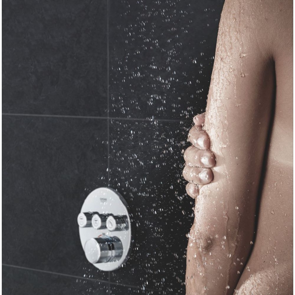 Откройте для себя мир инновационных технологий с термостатическим смесителем Grohe Grohtherm SmartControl 29121000. Этот смеситель скрытого монтажа от легендарного немецкого бренда Grohe создает идеальные условия для вашего душа, предоставляя полный контроль над каждой каплей. Его изысканный, минималистичный внешний вид представлен в форме круглой панели, которая обеспечивает легкий доступ к регулировке степени напора и температуре воды. Три смарт-кнопки SmartControl позволяют включать и отключать воду в различных зонах - будь то верхний или ручной душ, либо излив для ванны. Поворотные регуляторы делают настройку напора простой и понятной, от экономичного режима EcoJoy до максимального. Установленная температура поддерживается благодаря революционной технологии GROHE TurboStat®, гарантируя безопасность с пределом в 38°C для защиты от случайных ожогов.
