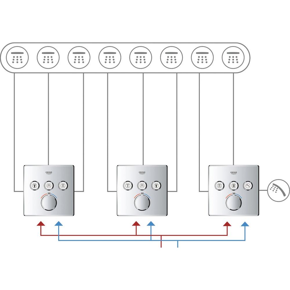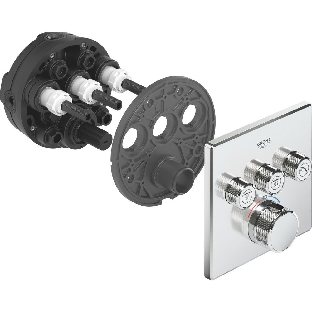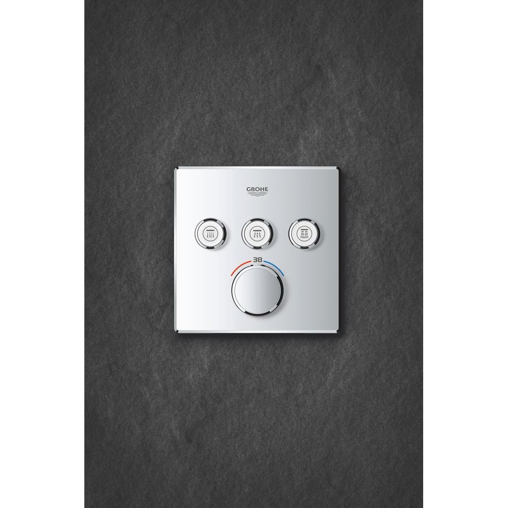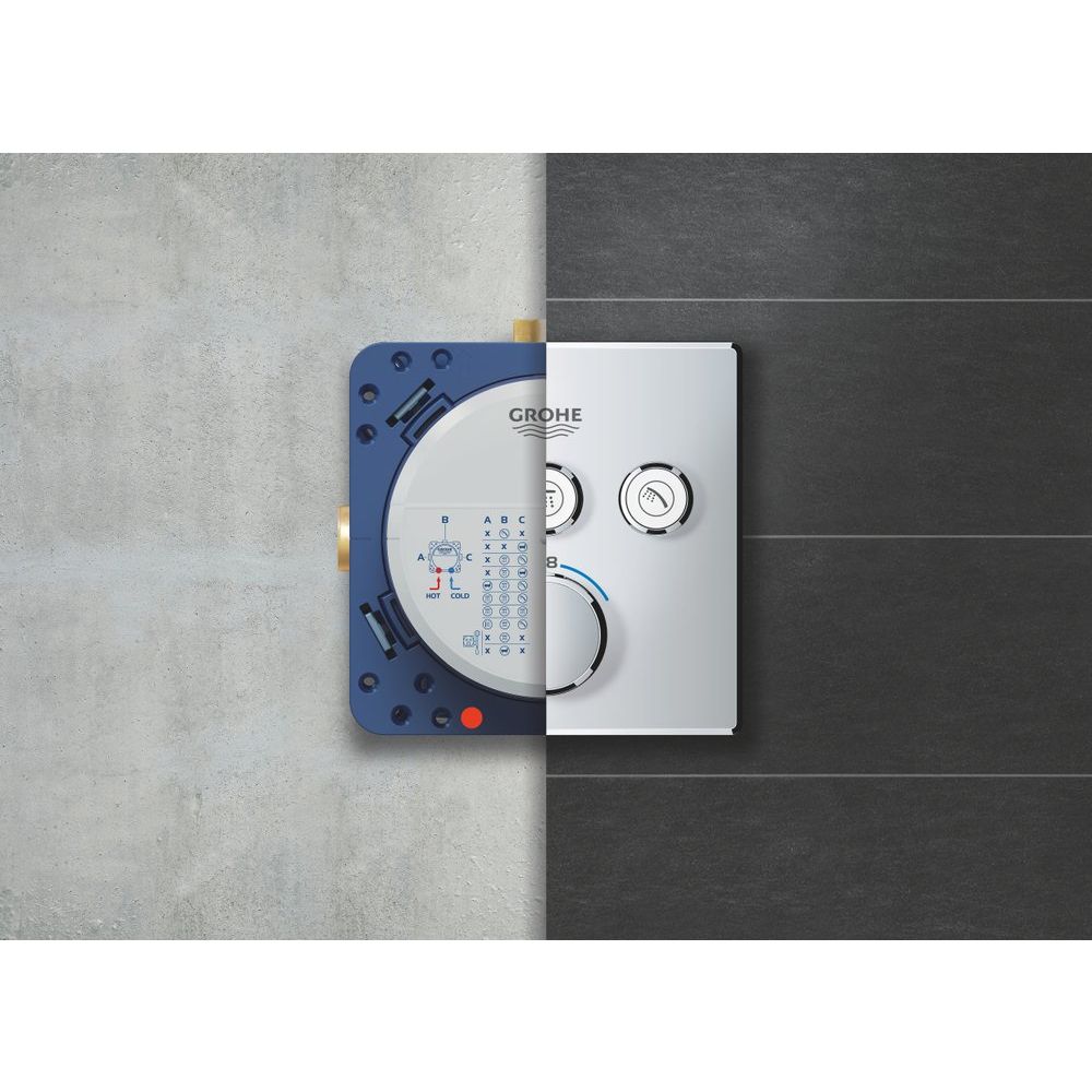 Термостатический смеситель Grohe Grohtherm SmartControl 29126000 — идеальное решение для современных ванных комнат, сочетающее в себе немецкое качество и элегантный дизайн. Этот смеситель скрытого монтажа имеет стильную металлическую накладную панель с хромированным покрытием GROHE StarLight®, обеспечивающим долговечность и простоту ухода. Удобные регуляторы позволяют быстро настроить напор и температуру воды для ручного или верхнего душа, а также излива для ванны.