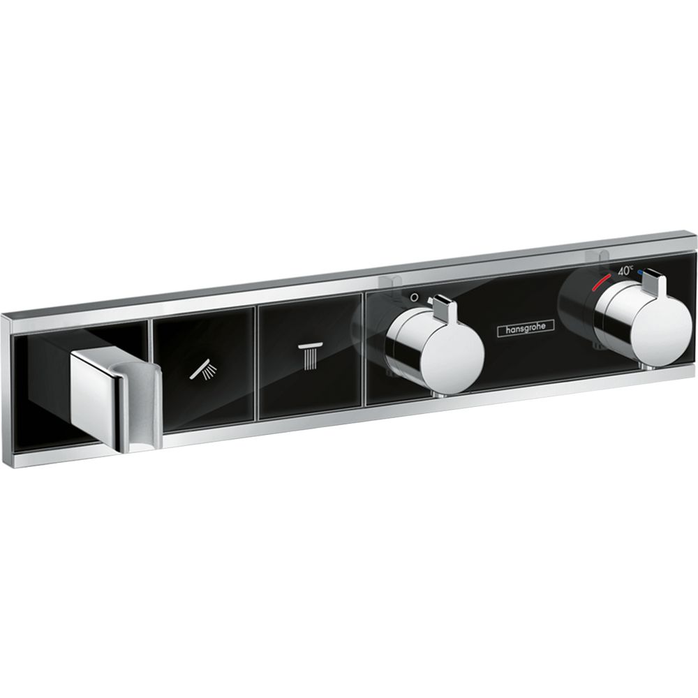 Термостатический смеситель Hansgrohe RainSelect 15355600 для душа в роскошном черно-хромовом исполнении создан для тех, кто ценит стиль, комфорт и современные технологии в ванной комнате. Элегантный дизайн смесителя дополняется его функциональными возможностями — он позволяет вам одновременно пользоваться несколькими душевыми устройствами. Это идеальное решение для создания спа-атмосферы в вашем доме.