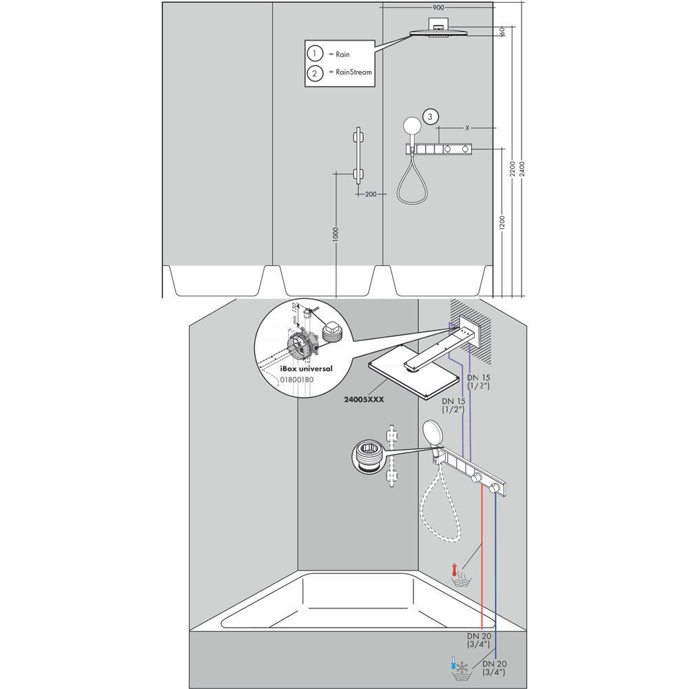 Смеситель изготовлен из безопасной латуни с глянцевым хромированным покрытием. Оснащен термостатическим картриджем и клапаном обратного потока. Подводка 3/4 дюйма интегрирована согласно стандартам. Для защиты от ожогов установлен предохранитель на 40°С. Обратите внимание, что внутренняя часть и душевое гарнитур приобретаются отдельно.