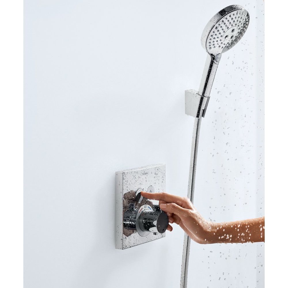 Термостатический смеситель Hansgrohe ShowerSelect 15763000 для душа — это инновационное решение для современного душа, обеспечивающее комфорт и безопасность использования воды. Этот термостат автоматически поддерживает заданную температуру, гарантируя, что вода не станет слишком горячей благодаря встроенному предохранительному ограничителю на отметке 38 °C. Благодаря специальной конструкции, устройство позволяет экономить воду, не снижая мощности потока. Смеситель рассчитан на использование двумя пользователями одновременно, что делает его идеальным выбором для семейной ванной комнаты. Материал — хромированная латунь, что обеспечивает долговечность и стойкость к износу, придавая изделию элегантный внешний вид, подходящий для любого интерьера.