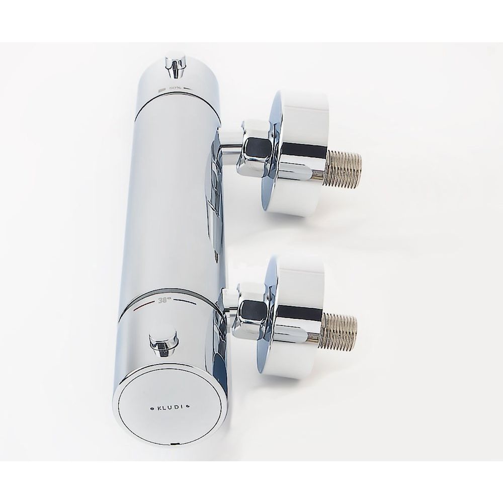 Термостатический смеситель Kludi Objekta 352000538 из латуни обеспечивает надежную и долговечную работу. Глянцевая поверхность добавляет современного стиля и защищает от износа. Оснащен термостатическим картриджем для поддержания постоянной температуры, что предотвращает внезапное изменение температуры воды. Смеситель имеет подводку 1/2 с отводом для душа G 1/2 и запорным вентилем для удобства использования. Встроенные очистные фильтры защищают от примесей. Гарнитур гарантирует экономию ресурсов благодаря функции снижения расхода воды. Продукция Kludi обеспечена пятилетней гарантией качества.