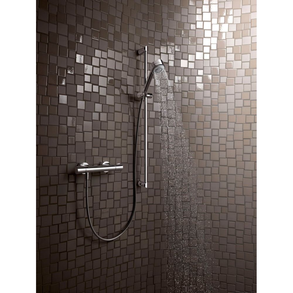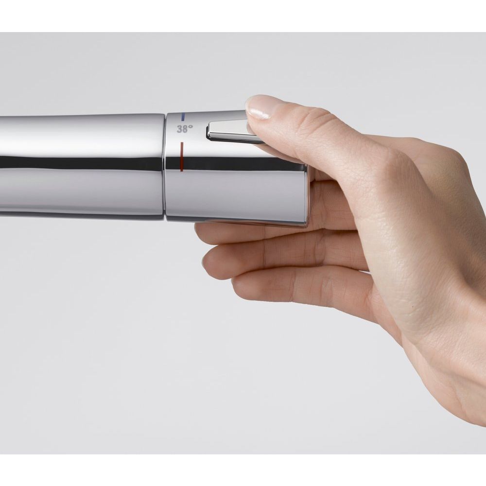 - Безопасность и комфорт: термостатический картридж поддерживает стабильную температуру воды.