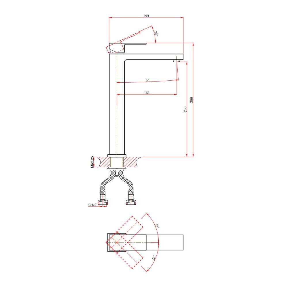 Убедитесь, что у вас достаточно места для установки смесителя с высотой излива 25.5 см. Благодаря матовому покрытию, смеситель устойчив к появлению отпечатков пальцев и легко чистится. Если вы ищете идеальное сочетание современного дизайна и функциональности, то этот смеситель станет отличным выбором для вашей ванной комнаты. Помните, что смеситель от D&K изготавливается в Германии, что гарантирует немецкое качество и долговечность.