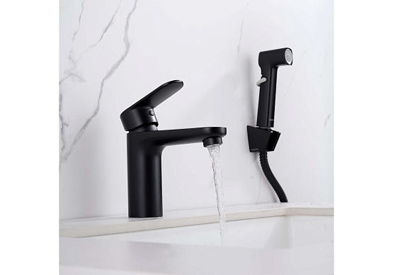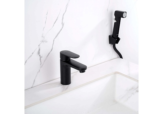 Перед установкой убедитесь в наличии одного монтажного отверстия на раковине, соответствующего стандартам. Рекомендуется использовать комплектную гибкую подводку для надежного подключения к водоснабжению. Гигиенический душ с удобным нажимным механизмом особенно полезен в санузлах и совмещенных ванных комнатах без отдельного подключения для душа. Однорычажное управление облегчает эксплуатацию, однако требует аккуратного обращения для увеличения срока службы картриджа. Черный матовый цвет покрытия придаст вашей ванной комнате современный и элегантный вид, а цельный корпус смесителя минимизирует риск протечек.