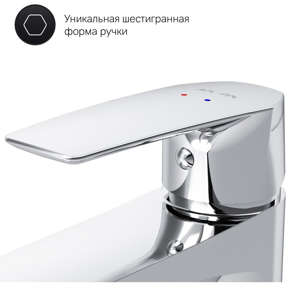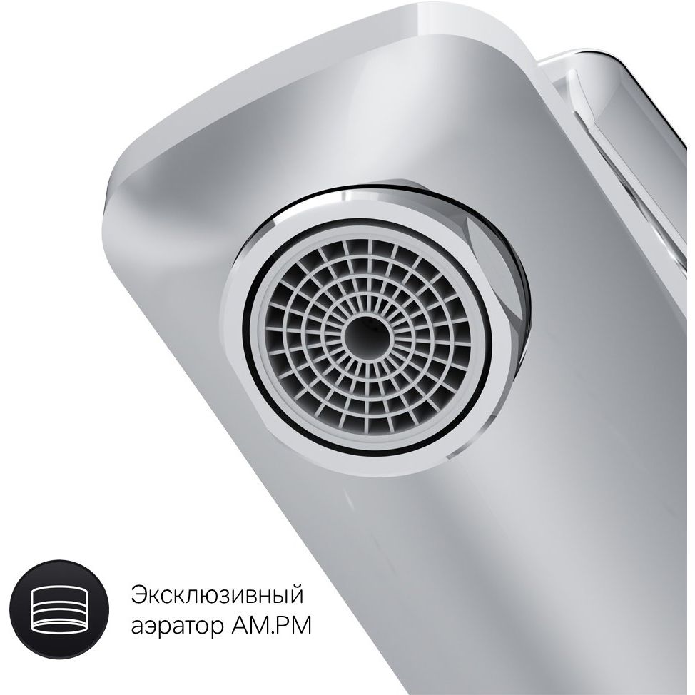 Смеситель AM.PM Gem F90A82100 имеет длину излива 9.9 см и высоту излива 10.6 см, а гладкая глянцевая поверхность придает ему элегантности. Смеситель выполнен из прочной латуни, а в комплект поставки входит донный клапан с переливом, гибкая подводка и крепления, что облегчает установку. Производится в Германии и поставляется с 10-летней гарантией.