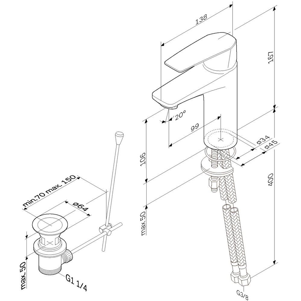 Важной особенностью смесителя является донный клапан с переливом, который подходит только для раковин со встроенным переливом. Учтите, что комплект уже включает донный клапан, что избавляет вас от необходимости приобретать его отдельно.