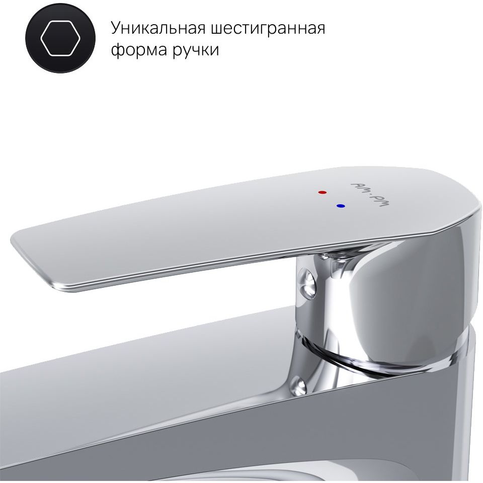 Смеситель Gem от компании AM.PM — это не просто элемент вашей ванной комнаты, а настоящее функциональное произведение искусства, способное преобразить любую раковину. Обладая элегантным дизайном, этот смеситель изготовлен из высококачественной латуни и покрыт глянцевым хромированным покрытием, которое устойчиво к царапинам и сохраняет блеск даже при длительной эксплуатации. Встроенный керамический картридж SoftMotion диаметром 35 мм обеспечивает тихую и плавную работу, а также поддерживает герметичность даже при значительных перепадах давления воды. Удобный рычаг позволяет точно регулировать температуру и напор воды. Благодаря аэратору, вода становится мягче и не разбрызгивается, а донный клапан с переливом способствует экономии воды, что особенно важно в процессе выполнения повседневных задач.