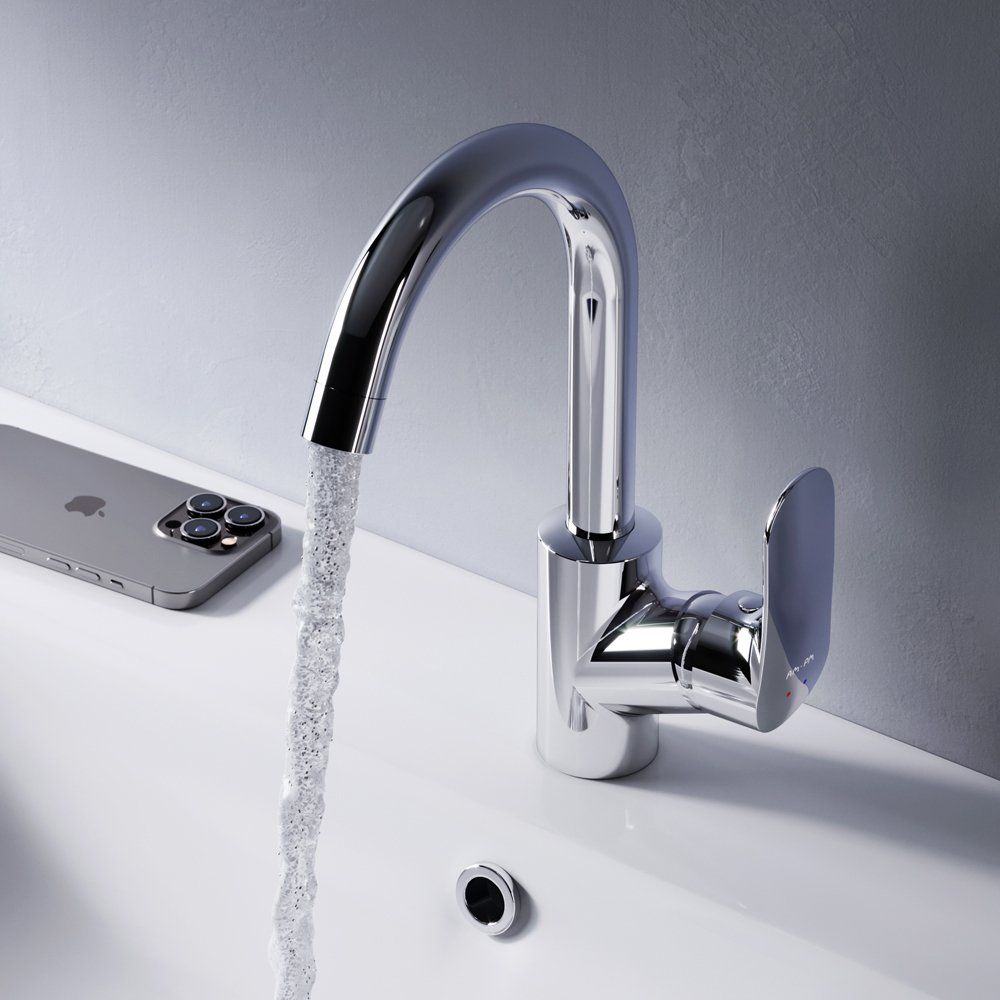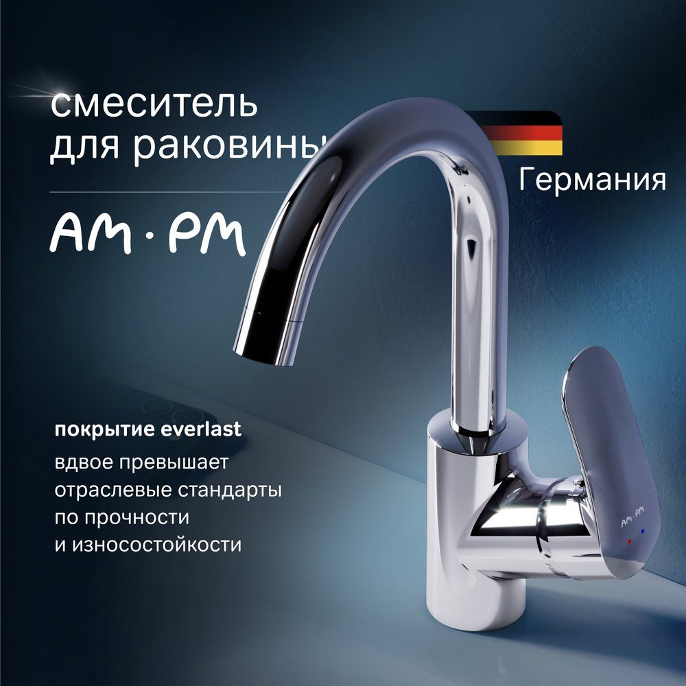 Смеситель AM.PM Like F8002700 оснащен 13.5 см изливом, который вращается для обеспечения максимального комфорта при использования раковины. Высота излива составляет 17.3 см, что идеально подходит для глубоких чаш. Изготовлен из прочной латуни, смеситель имеет гладкую поверхность с глянцевым блеском, которая придает изделию эстетическую законченность и долговечность. Также в комплекте аэратор, который легко очищается, и гибкая подводка. Гарантия на смеситель составляет 10 лет, что подчеркивает его надежность и долговечность. Смеситель произведен в Германии, что гарантирует высочайшие стандарты качества.