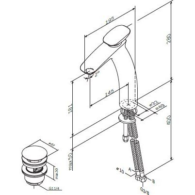 - Излив длиной 14.5 см и высотой 18.1 см идеально подходит для накладных раковин.