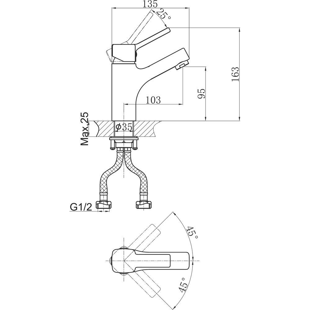 Смеситель для раковины D&K Rhein.Dusseldorf DA1492101 имеет излив длиной 10.3 см и высотой 9.5 см, что обеспечивает комфортное использование. Изготовлен из латуни с глянцевым покрытием, изделие не только красиво выглядит, но и защищено от известкового налета благодаря антиизвестковому покрытию. В комплект входят аэратор с функцией легкого очищения, гибкая подводка 40 см и крепления для быстрой и простой установки. Гарантия на изделие составляет 5 лет, подтверждая надежность немецкой сборки.