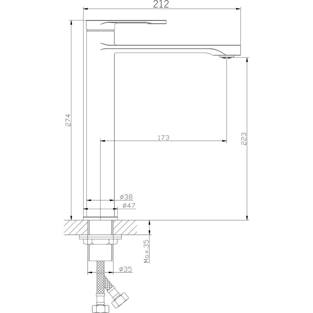 Смеситель имеет изящный излив длиной 17.3 см и высотой 22.3 см, позволяя удобно использовать раковину любого размера. Материал изделия — высококачественная латунь, устойчивая к коррозии, а гладкая глянцевая поверхность обеспечивает дополнительный эстетический эффект. Аэратор, который интегрирован в смеситель, обеспечивает мягкий поток воды без брызг и экономит её расход, снижая ваши траты на водоснабжение. В комплекте смесителя также присутствует гибкая подводка, упрощающая монтаж.