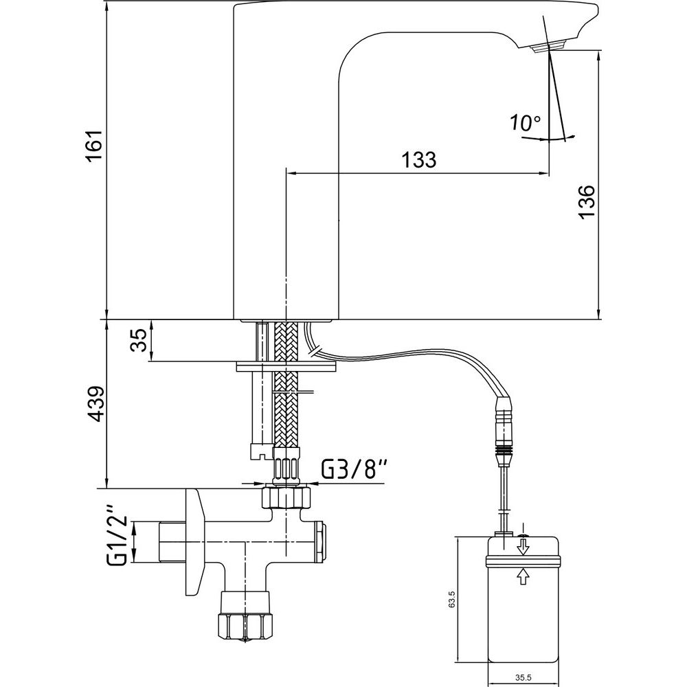 Смеситель E.C.A. Photoscell 108108037EX оснащен аэратором, обеспечивающим равномерный поток воды. Длина излива составляет 13.3 см, а высота — 13.6 см, что оптимально для большинства стандартных раковин. В комплект также входят гибкая подводка и все необходимые крепления, что упрощает процесс установки. Произведено в Турции, изделие воплощает в себе европейское качество и современный функционал.