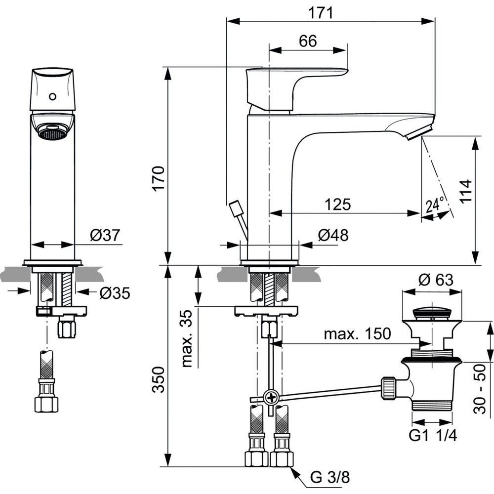 Перед покупкой обратите внимание, что смеситель уже комплектуется донным клапаном, который упрощает процессы установки и эксплуатации. Это изделие не оснащено функцией перелива, поэтому его выбор нужно делать, исходя из конфигурации вашей раковины. Высокое немецкое качество Ideal Standard гарантирует надежность и долгий срок службы, но важно учитывать специфические характеристики использования в вашей ванной комнате.
