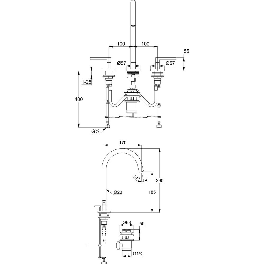 Смеситель выполнен из прочной латуни с матовой поверхностью. Длина излива составляет 17 см, а его высота — 18,5 см, что идеально подходит для большинства раковин. Поворотный излив обеспечивает удобство использования, особенно в условия ограниченного пространства. Кроме того, в комплект входит донный клапан с переливом, что делает его совместимым только с раковинами, оборудованными встроенным переливом.