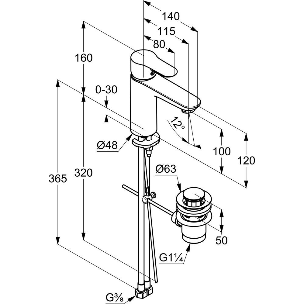 - Донный клапан и гибкая подводка входят в комплект.