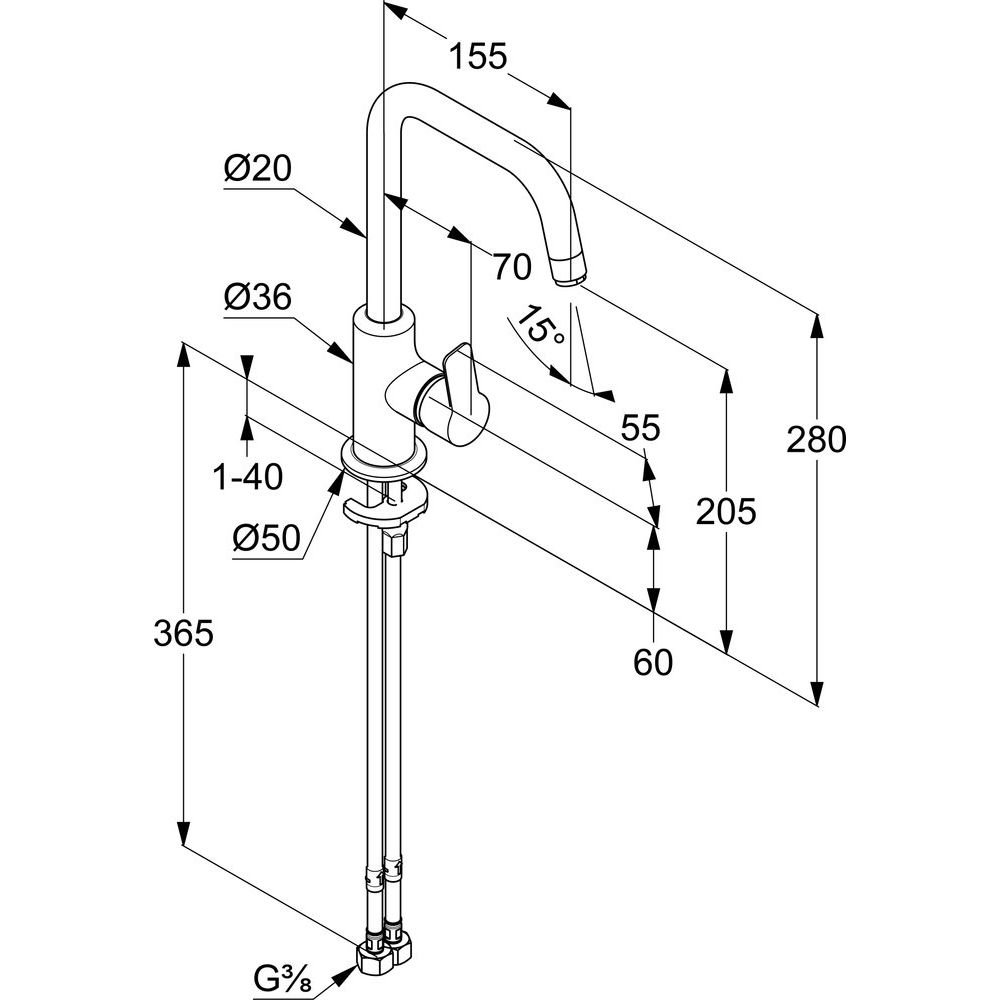 - Удобство использования за счет поворотного излива и гибкой подводки.