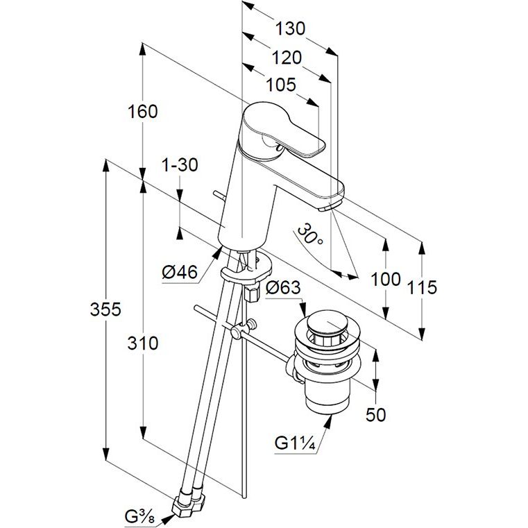 - Эргономичный дизайн с удобным рычагом управления донным клапаном.