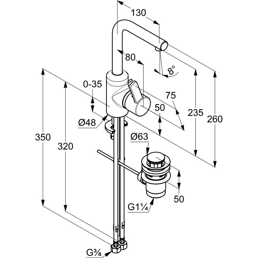 Приобретая смеситель для раковины Kludi Zenta, вы получаете надежное устройство с уже включенным донным клапаном, что устранит необходимость дополнительных покупок. Установка проста благодаря комплекту креплений и гибкой подводке, входящим в комплект.