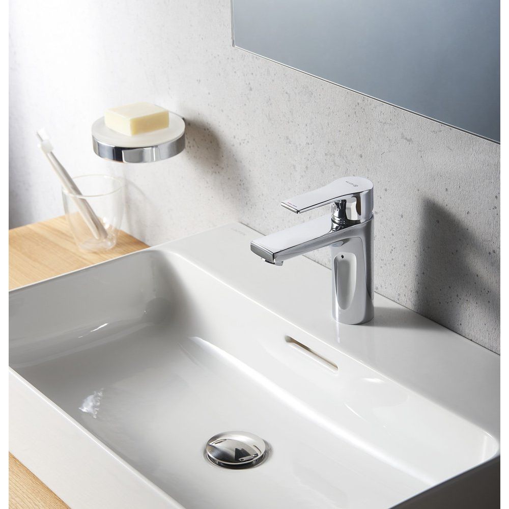Смеситель Kludi Zenta SL оборудован изливом длиной 11 см и высотой 10 см, что делает его подходящим для большинства стандартных раковин. В конструкции предусмотрены аэратор и гибкая подводка для удобства использования. Смеситель комплектуется креплениями и системой быстрого монтажа, что заметно упрощает процесс установки. Гладкое глянцевое покрытие не только эстетично, но и легко очищается от загрязнений.