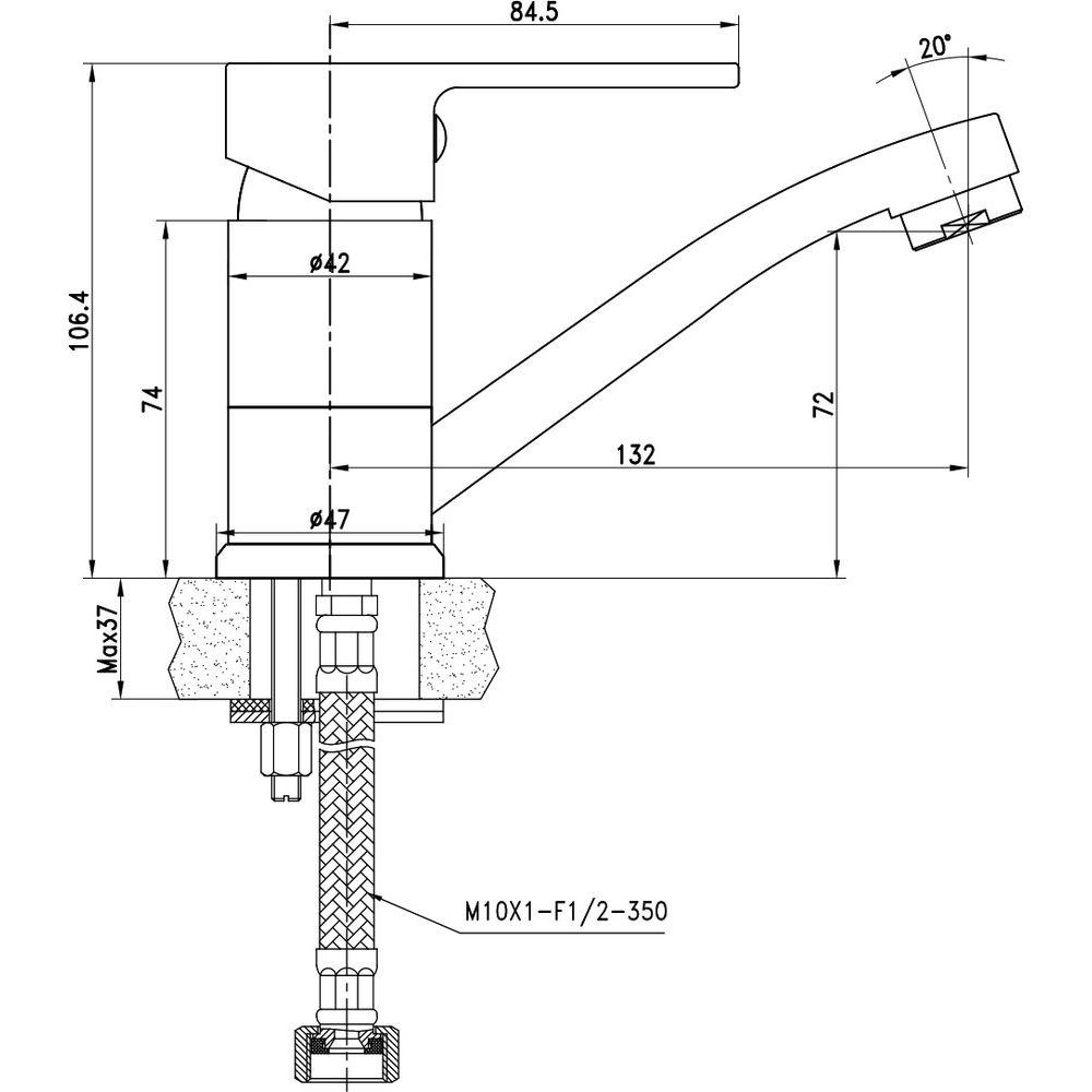 Смеситель имеет длину излива 13.2 см и высоту излива 7.2 см, что идеально подходит для большинства стандартных раковин. Дополнительное оснащение включает в себя аэратор, который обеспечивает экономию воды без потери напора. Гибкая подводка и крепления входят в комплект, что упрощает установку и гарантирует надежное крепление.