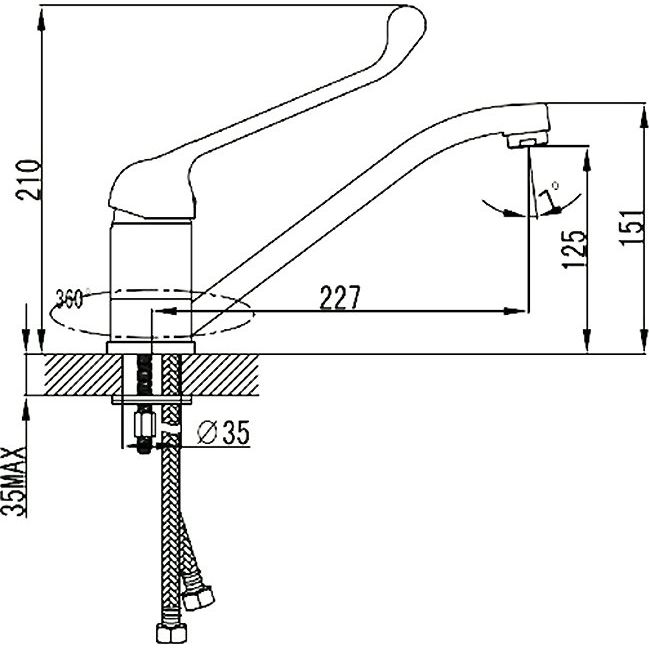 Смеситель изготовлен из прочной латуни и имеет поворотный излив длиной 22.5 см и высотой 12.5 см, что обеспечивает удобство использования. Глянцевая поверхность добавляет элегантности в интерьер вашей ванной комнаты. В комплект входят аэратор, гибкая подводка и крепления для простой установки. На изделие предоставляется 4-летняя гарантия. Страна-производитель — Чехия.