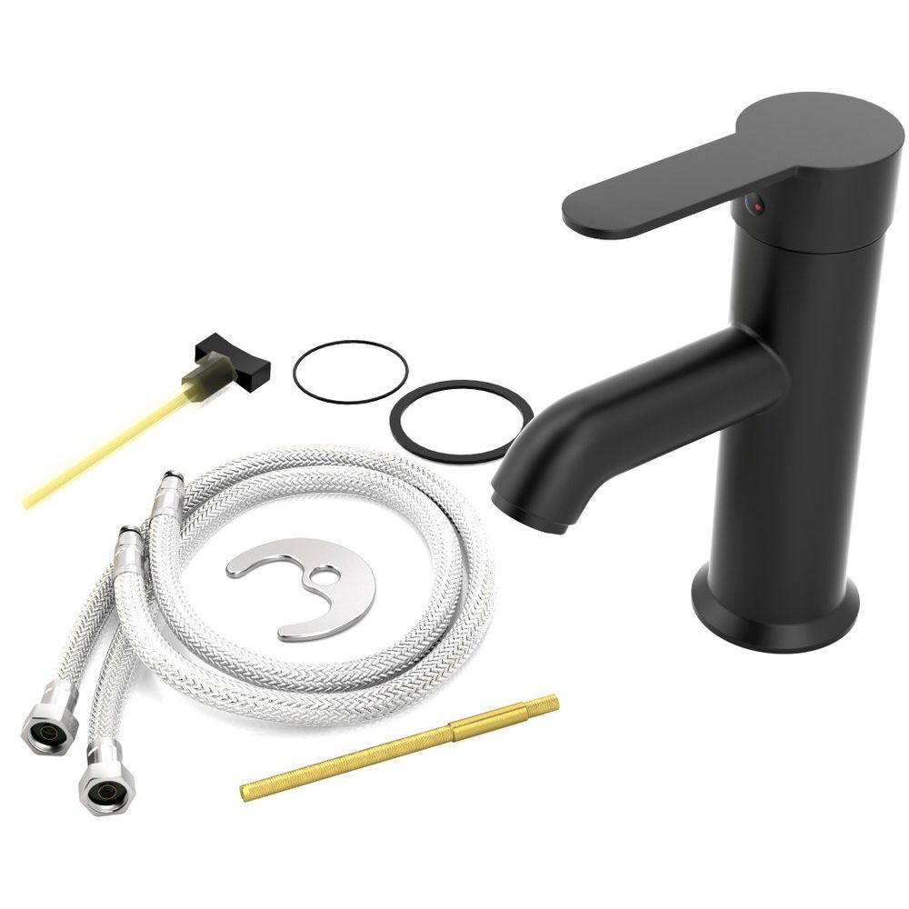 Смеситель MEGA City MG-ZRV100-B изготовлен из прочной латуни и имеет устойчивую матовую поверхность. Длина излива составляет 11.4 см, а его высота — 10 см. В комплект входят аэратор, гибкая подводка и необходимые крепления.