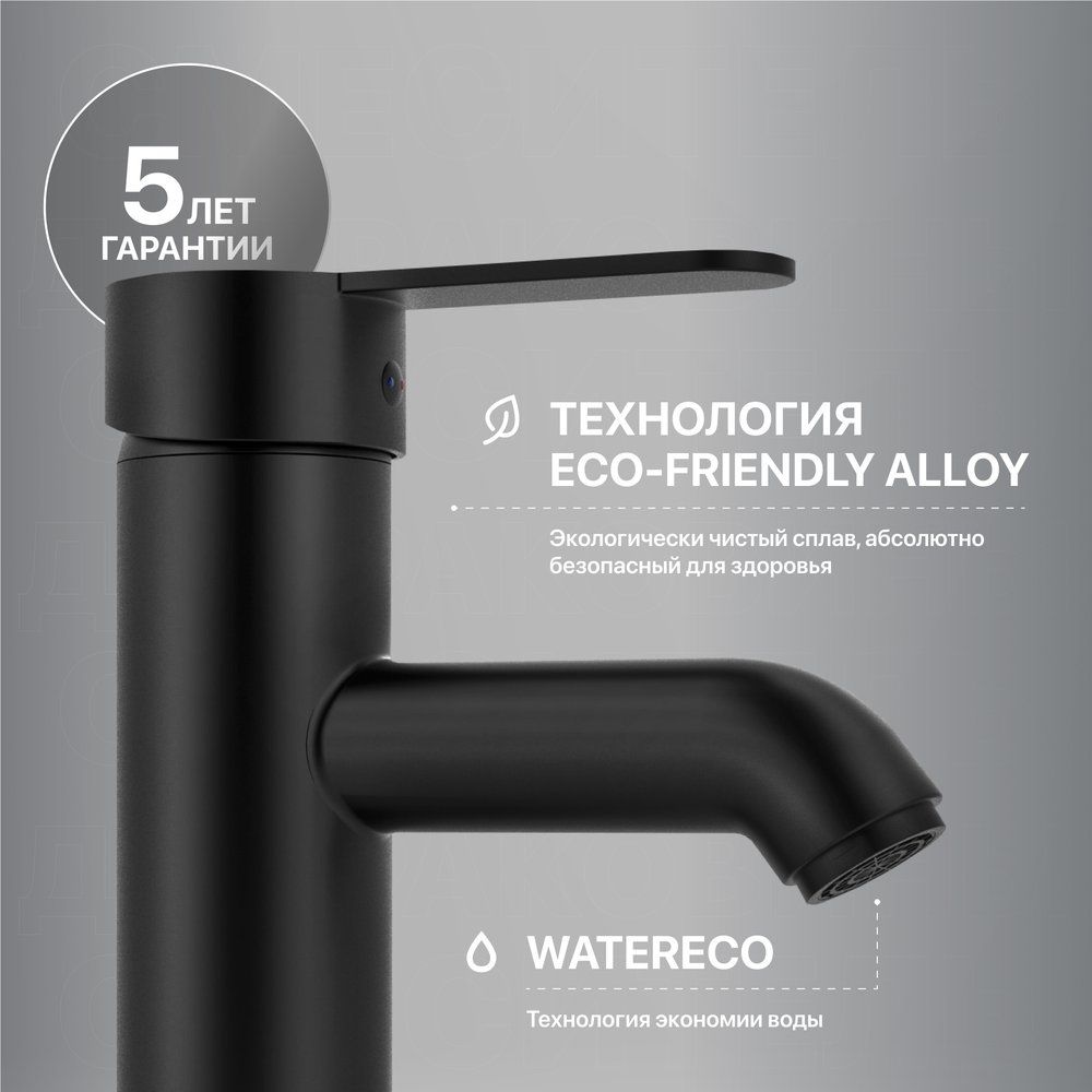 Однорычажный черный смеситель для раковины MEGA City MG-ZRV100-B — это идеальное решение для тех, кто ценит современный дизайн и высокое качество. Разработанный международной командой специалистов, этот смеситель сочетает в себе функциональность и стиль. Латунь, из которой он изготовлен, производят с использованием технологии Eco-friendly alloy, делая изделие экологически чистым. Матовая порошковая покраска обеспечивает защиту от царапин и воздействия бытовой химии. Встроенная функция WaterECO бережно относится к природным ресурсам, помогая экономить воду. Установка смесителя превращается в легкую задачу благодаря технологии Quick installation.