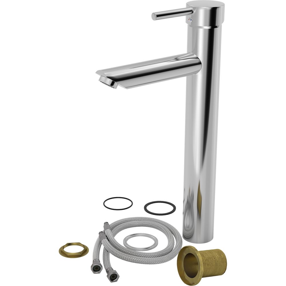 Высокий однорычажный смеситель для раковин с длиной излива 18.5 см и высотой 27 см идеально подходит для накладных раковин. Изготовлен из высокопрочной эко-латуни, смеситель обеспечивает долговечность и безопасность использования. Гладкая, глянцевая поверхность с хромоникелеем впечатлит своим сияющим блеском. Аэратор облегчает чистку, а гибкая подводка и крепления делают монтаж максимально простым.