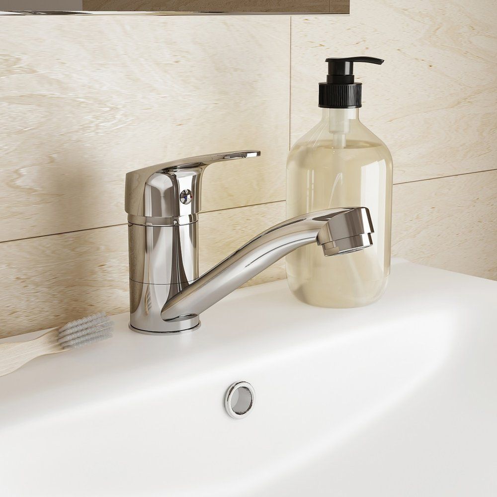 - Поворотный излив добавляет удобства в использовании, позволяя легко направить воду в нужное место раковины.