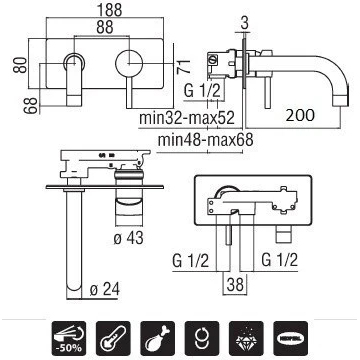 Скрытая часть смесителя в комплект поставки не входит и приобретается отдельно.