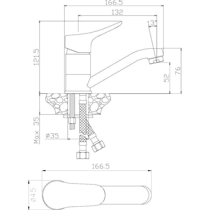Этот смеситель снабжен поворотным изливом длиной 13.2 см и высотой 5.2 см, что делает его идеальным выбором для различных типов раковин. Латунный корпус и глянцевая поверхность обеспечивают прочность и придают продукту стильный вид. Конструкция включает компактную гибкую подводку и надежные крепления, что облегчает установку и эксплуатацию. Смеситель поставляется с дополнительным оснащением, включая аэратор, для обеспечения полноценного комфорта.