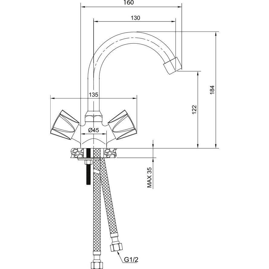Латунный смеситель для раковины с глянцевым хромированным покрытием. Длина излива составляет 13 см, а его высота — 12.2 см, что делает смеситель удобным для установки в большинстве стандартных размеров раковин. Продукт оснащен аэратором, гибкой подводкой и креплениями, что превращает его установку в легкий и приятный процесс.