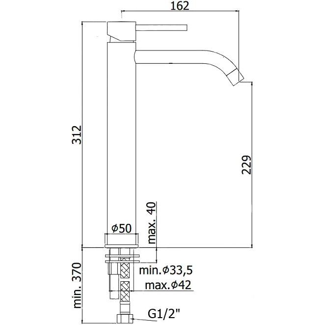 Излив смесителя имеет длину 16.2 см, что обеспечивает удобство в использовании. Высота излива составляет 22.9 см, соответствуя большинству стандартных умывальников. Изготовлен из высокопрочной латуни, смеситель дополнен гибкой подводкой для лёгкой и быстрой установки. Гарантия на изделие — 5 лет, что подтверждает уверенность производителя в надежности своей продукции. Производится в Италии, стране с давними традициями в области сантехники.