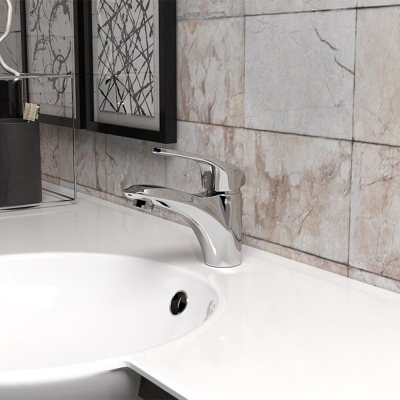 Смеситель обладает длиной излива 11.6 см и высотой 7.2 см, что обеспечивает удобство использования. Выполнен из латуни, материал отличается высокой прочностью и устойчивостью к износу. Оборудован аэратором для плавного и экономичного расхода воды, а также комплектуется гибкой подводкой и креплениями, что обеспечивает легкость в установке. Гладкая глянцевая поверхность подчеркивает современный стиль и делает уход за изделием простым и быстрым.