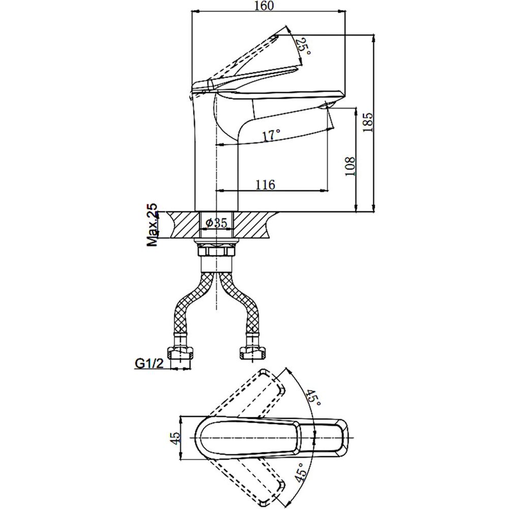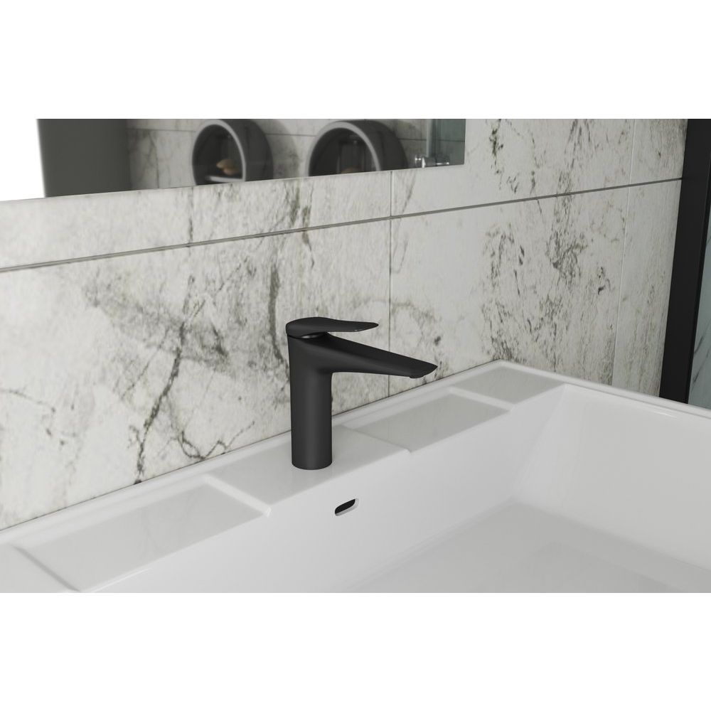 Излив длиной 11.6 см и высотой 10.8 см делают смеситель идеально подходящим для небольших и средних раковин. Основной материал — латунь, обеспечивающая прочность и надёжность. Смеситель имеет матовое покрытие, что придаёт ему современный вид и лёгкость в уходе. В комплект входит гибкая подводка длиной 40 см с латунными гайками, а также крепления.
