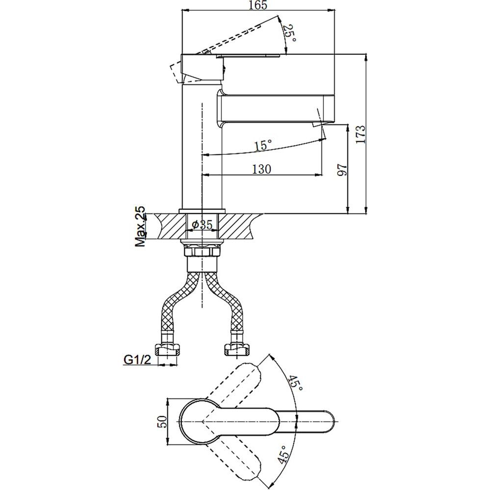 Смеситель для раковины выполнен из высококачественной латуни и имеет глянцевую поверхность. Его излив длиной 13 см и высотой 9.7 см удобен для повседневного использования. Пластиковый аэратор оснащен функцией легкого очищения, что способствует долгосрочной эксплуатации. Благодаря универсальной присоединительной группе, смеситель может быть установлен на горизонтальную поверхность. В комплект входит гибкая подводка 40 см с латунными гайками и прочные крепления, что облегчает процесс монтажа.
