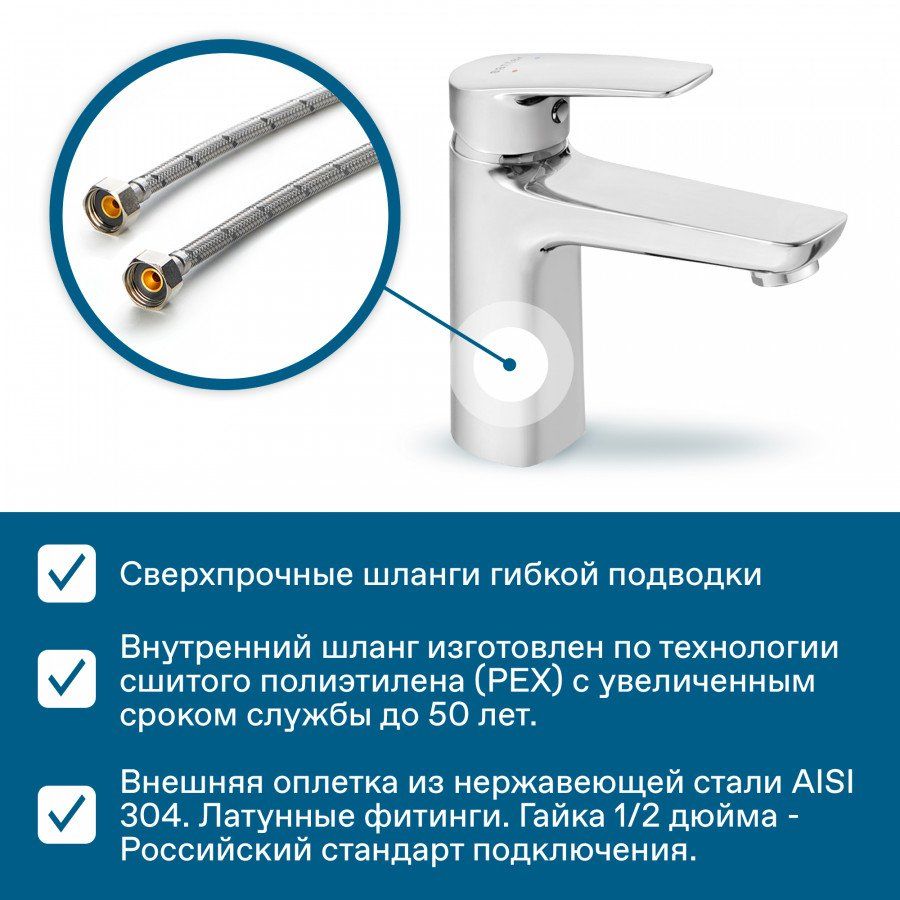 - Комплексная комплектация для удобной установки: гибкая подводка и надёжные крепления.