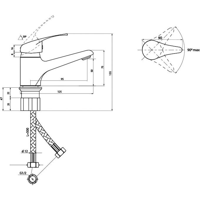 - Современный керамический картридж с увеличенным углом поворота для удобства управления.