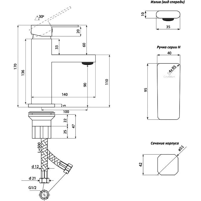 Перед установкой смесителя «Славен Коттедж Н» убедитесь, что место установки соответствует стандартным размерам. Гибкая подводка предотвращает образование конденсата и защищает от блуждающих токов, гарантируя долгий срок службы. Данная модель спроектирована для быстрой и легкой установки, следуйте инструкциям производителя для максимальной безопасности и эффективности.