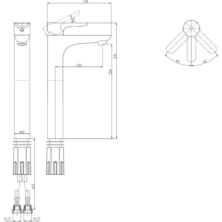 - Надежная гибкая подводка и крепления в комплекте для быстрой установки.