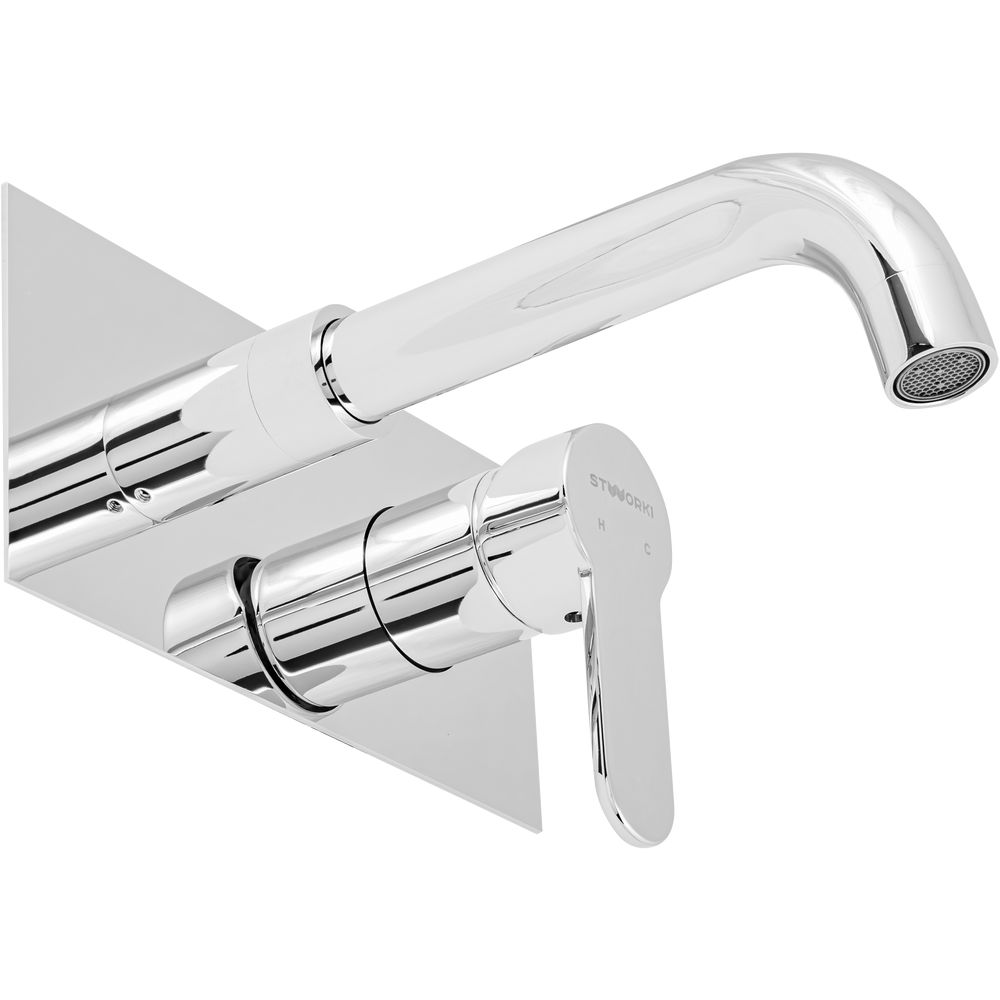 Смеситель для раковины STWORKI «Ольборг FD10005» — это идеальное решение для тех, кто ценит стиль и функциональность. Этот встраиваемый однорычажный смеситель предназначен для скрытой настенной установки, что позволяет экономить пространство и придавать ванной комнате эстетическую завершенность. Он подходит для установки на любую раковину, включая накладные модели. Комплектация включает внешнюю часть с изливом, оснащенным аэратором, рычагом и декоративной панелью, а также внутреннюю часть и все необходимые крепления. Вы по достоинству оцените надежный керамический картридж с увеличенным ресурсом, который обеспечивает качественное смешивание воды и плавное движение рычага. Смеситель изготовлен из экологически чистого латунного сплава и защищен глянцевым хромоникелевым покрытием, устойчивым к бытовой химии и царапинам.