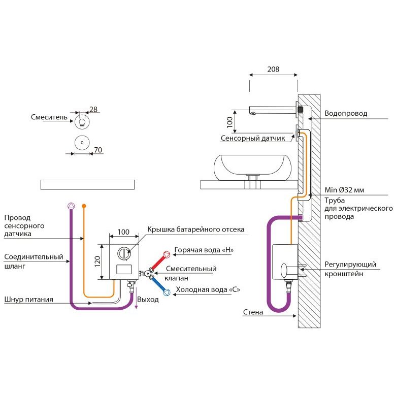 Важное преимущество — внутренняя часть уже включена в комплект, что упрощает процесс установки и сокращает затраты времени и сил. Обязательно учитывайте, что установка сенсорного смесителя требует наличия электропитания для батареи. Также, благодаря встроенному ограничителю, есть возможность установить безопасную температуру воды, что особенно важно для семей с детьми.